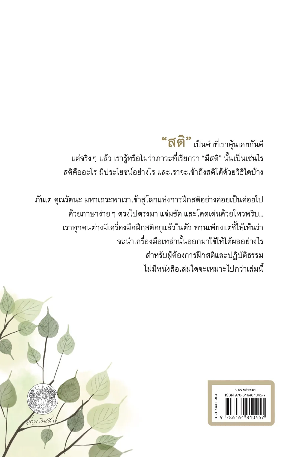 ภันเต คุณรัตนะ มหาเถระ พาเราเข้าสู่โลกแห่งการฝึกสติอย่างค่อยเป็นค่อยไปด้วยภาษาง่ายๆ ตรงไปตรงมา แจ่มชัด และโดดเด่นด้วยไหวพริบ… เราทุกคนต่างมีเครื่องมือฝึกสติอยู่แล้วในตัว ท่านเพียงแต่ชี้ให้เห็นว่าจะนำเครื่องมือเหล่านั้นออกมาใช้ให้ได้ผลอย่างไร สำหรับผู้ต้องการฝึกสติและปฏิบัติธรรม ไม่มีหนังสือเล่มใดจะเหมาะไปกว่าเล่มนี้